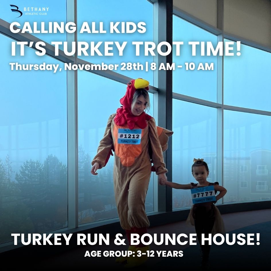 The Turkey Trot is a festive run for children ages 3-12 years old on the indoor track, and will take place at the same time as Burn the Turkey (8AM-10AM). As a friendly reminder, the gym will close at 2:00pm on Thanksgiving Day.